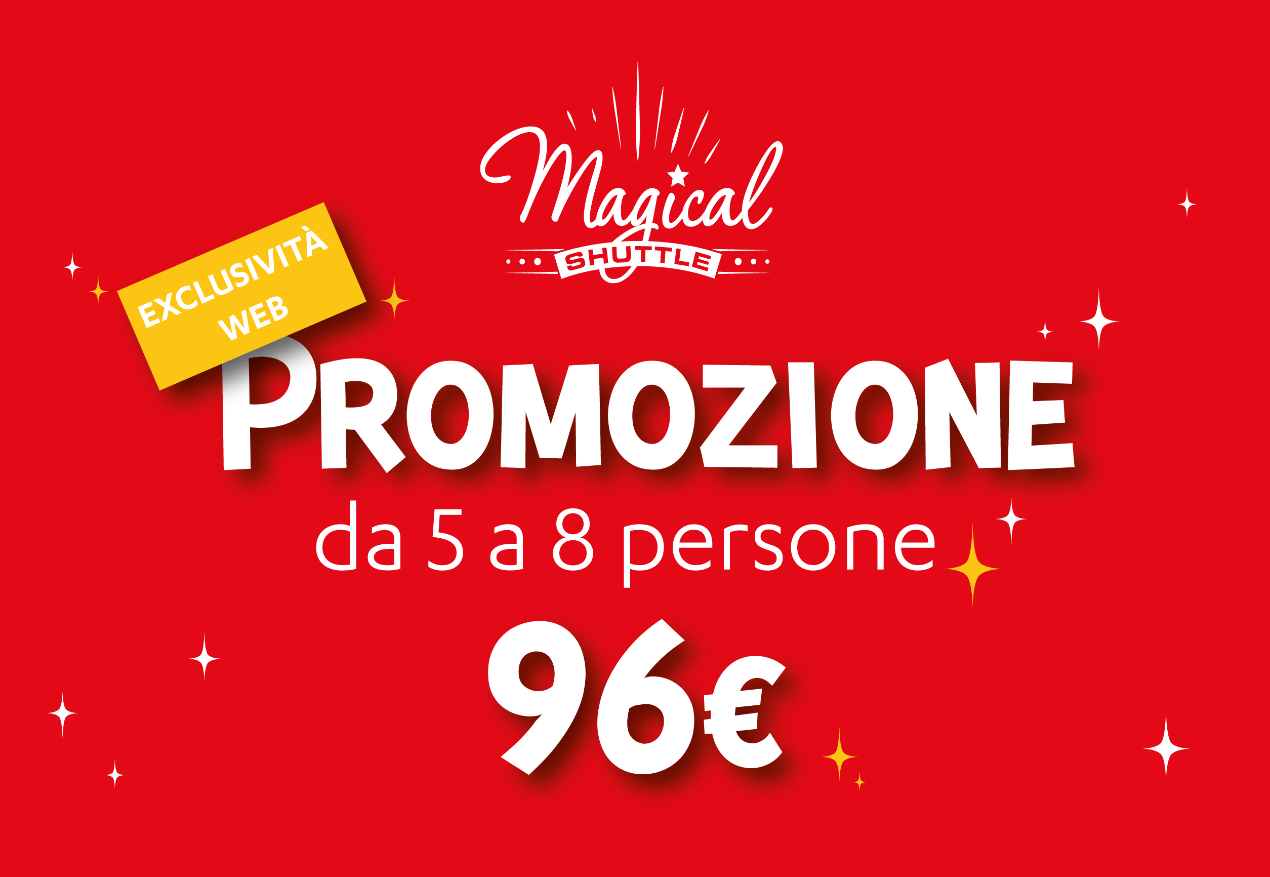Offerta riservata a gruppi da 5 a 8 persone. Tariffa fissa per tratta, non cumulabile con altre promozioni. Offerta valida fino al 31/12/2026.